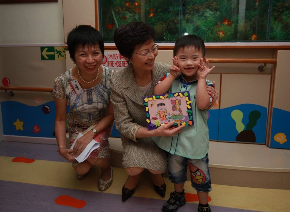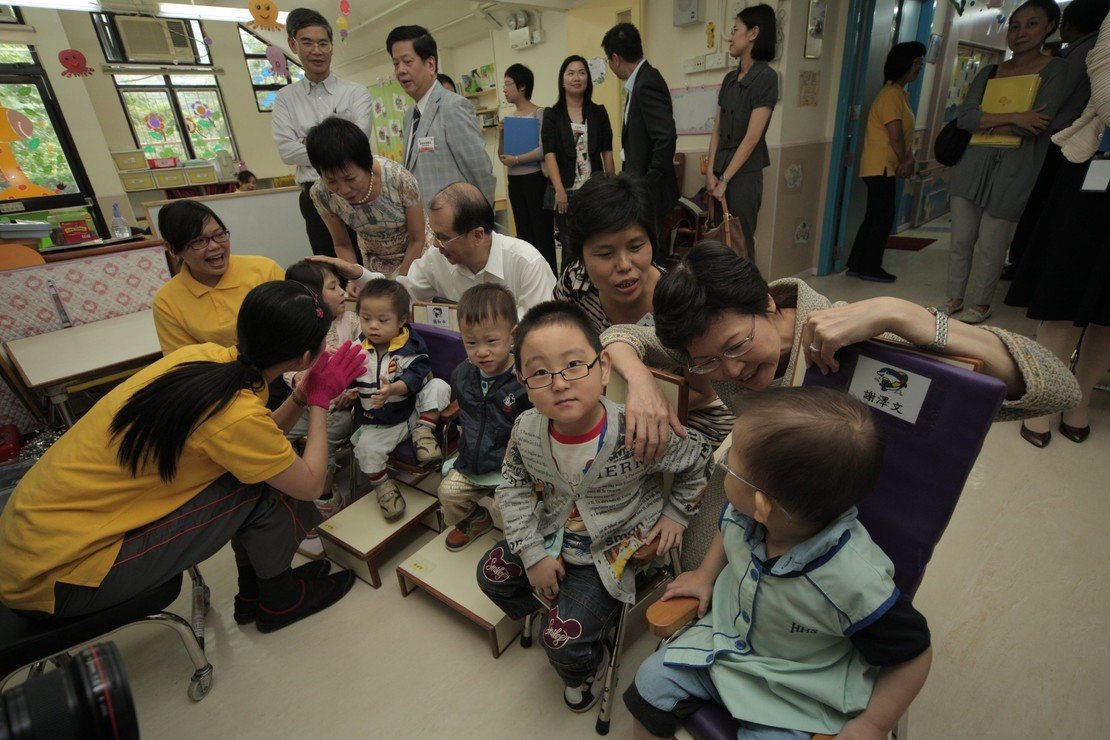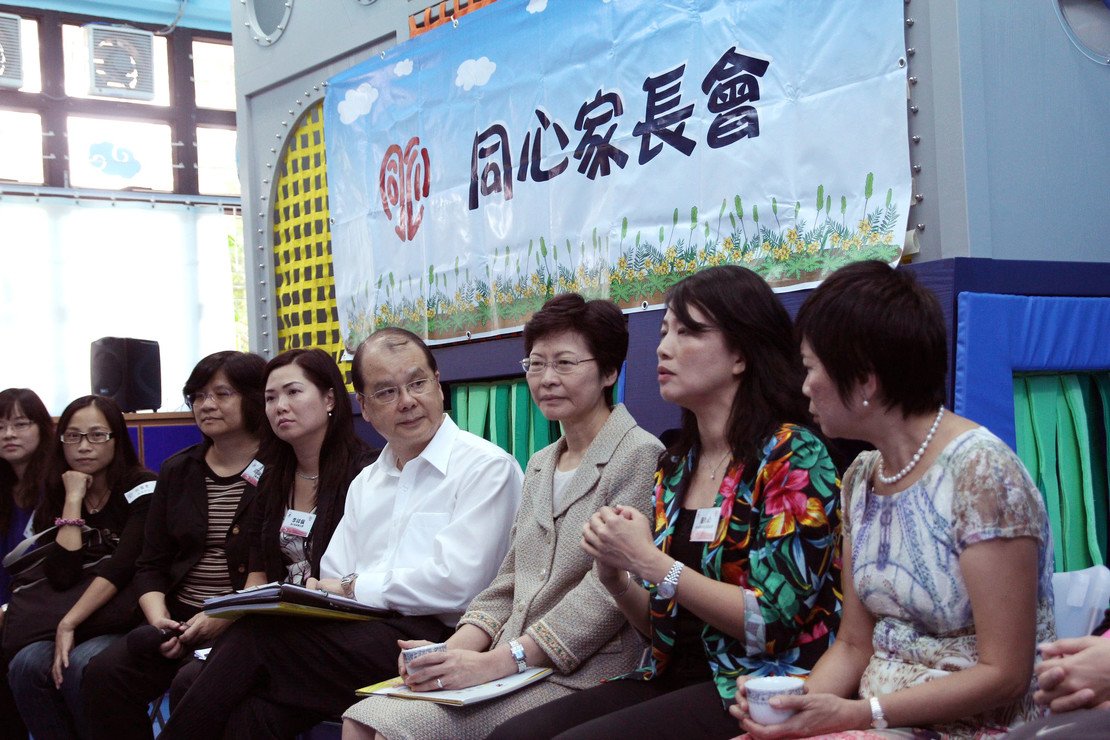 扶貧委員會籌備小組副主席、政務司司長林鄭月娥,聯同小組成員羅致光博士及勞工福利局局長張建宗,今天(八月三十日)到訪協康會王石崇傑紀念中心,在協康會執行委員會主席歐陽卓倫醫生及總幹事曾蘭斯陪同下,與同心家長會主席李祥佩女士及二十多位會員代表會面,了解家長們對現時學前特殊教育服務的期望和訴求。