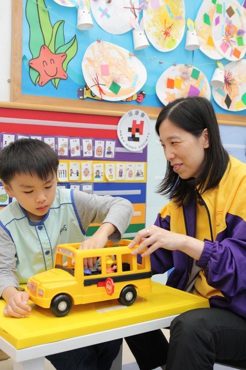 6歲的軒仔被評估有自閉症,2013年入讀秦石特殊幼兒中心,初期軒仔有嚴重的行為情緒問題,上街時經常尖叫﹑亂跑。乘坐小巴時,更會因為不是熟悉的司機而不肯上車,令媽媽既尷尬又苦惱;到街市和超市更是軒仔最討厭的,媽媽每次都要找人照顧兒子才能外出購買物,經常大感為難。因為不懂處理兒子的情緒問題,又經常遭受旁人責備,令軒仔媽媽非常失落和沮喪,越來越不願帶兒子上街。幼兒中心的老師留意到軒仔喜歡紅色和比他小的同學,外出時就讓他拿著紅色物件及拖著同學,幫他穩定情緒,又用程序卡和圖卡幫他學習社交程序。現在,軒仔有顯著的改善,除學會控制情緒,還能夠拖著母親或老師安靜地上街,甚至協助老師安撫鬧情緒的同學,更愛上到超市購物。令媽媽最欣慰的,是經過認知訓練後,軒仔現在能夠憑號碼坐車,即使由不同司機駕駛,也會乖乖上車。媽媽開心地說:「協康會的服務對軒仔幫助很大,老師們因應他的喜好和特性安排訓練,令他大有進步。如今帶他上街,他開心,我也開心。」